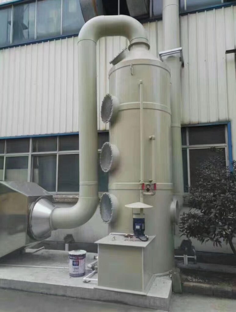 If the laboratory exhaust gas is acid-base exhaust gas such as hydrochloric acid, nitric acid, hydrofluoric acid, etc., choose a spray wet scrubber. The wet scrubber adopts the principle of counter-flow absorption. Through the above-mentioned PP air pipe, it is introduced into the tail gas absorption tower, and a circulating liquid spray device is installed in the tower absorber. After the tail gas passes through the spray packing, an acid-base neutralization reaction occurs, and the tail gas is purified.