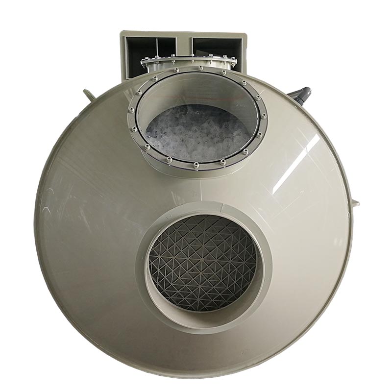 The high-efficiency spray tower system and fan unit suck the collected waste gas into the acid mist scrubber, and flow through the filling layer (gas/liquid contact reaction medium), so that the waste gas is in full contact with the liquid medicine (washing liquid) flowing on the surface of the filling, In order to absorb the acidic or alkaline dirt contained in the exhaust gas. After washing, the waste liquid is collected in the sump and then discharged to the wastewater system for treatment.