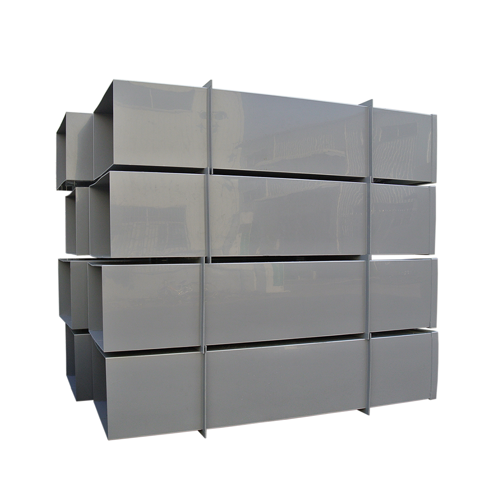 polypropylene plastic air duct, which is used for exhaust gas exhaust in the laboratory. It is usually used as the main duct and branch duct with the PP circular duct. The ventilation plastic square tube is made of PP sheet through a bending machine, four times 90-degree elbows, and then hot-melt welding. There are many processes. Compared with square pipes, the price of square pipes is higher than round pipes with the same circumference or cross-section. Of course, it also depends on the wall thickness of the square plastic pipe and whether it is reinforced by the outer flange.