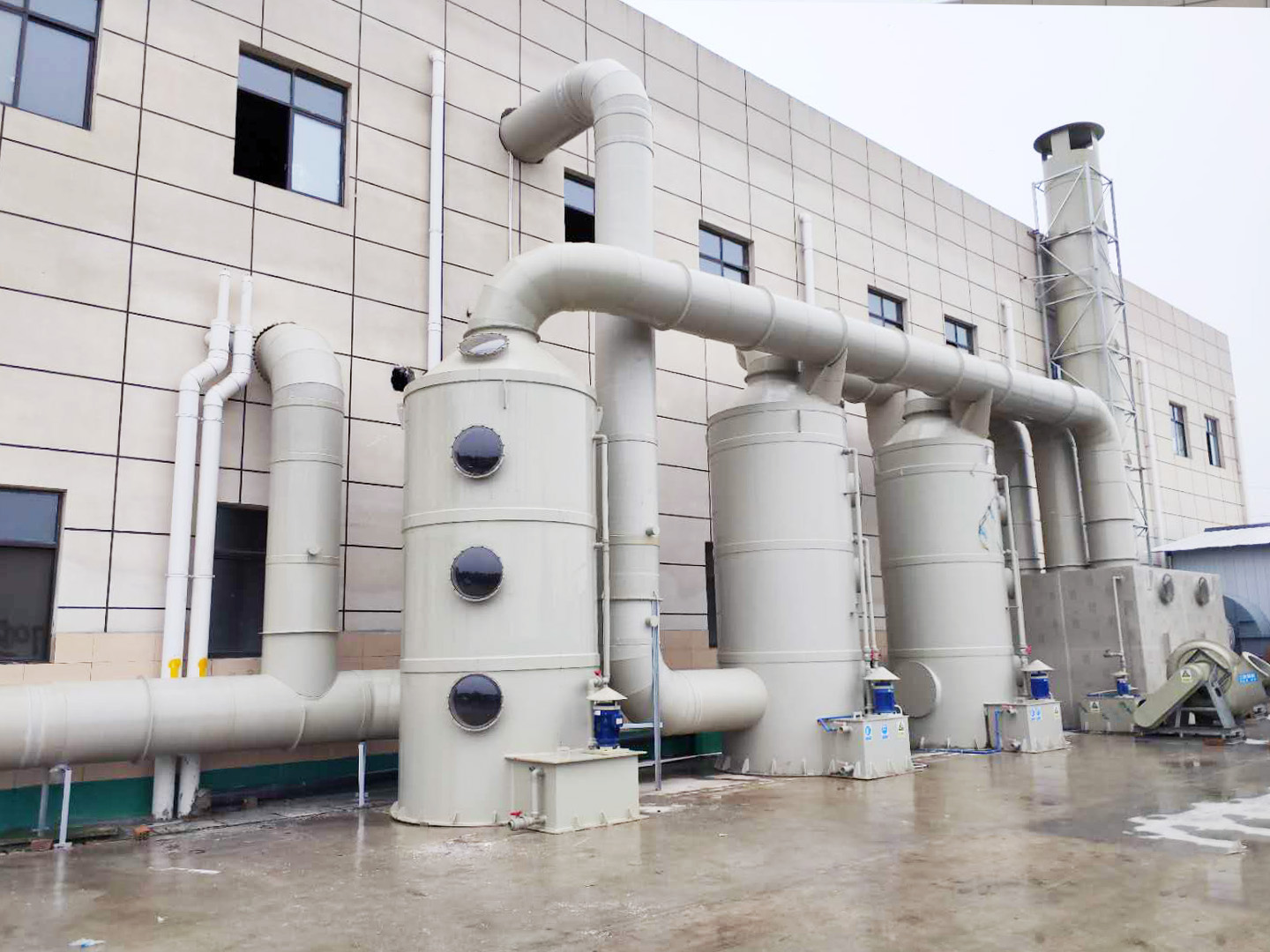 The acid fume scrubber is suitable for an acid mist treatment scheme. Acid mist exhaust gas is collected by a suction hood or other gas-collecting device and then passes through the PP air duct. Under the action of an anti-corrosion centrifugal fan at the end, acid mist exhaust gas is drawn into exhaust gas purification in the formaldehyde scrubber, the acid mist exhaust gas flows upstream in the scrubber, and the wind speed becomes slow. The acid-base neutralization reaction takes place in the packing layer with a large specific surface area and a particular concentration of sodium hydroxide alkali solution for absorption. It then passes through the top of the tower to remove mist. The water mist is removed from the layer, and after exiting the tower, it passes through the anti-corrosion centrifugal fan. Under the centrifugal fan, the gas is sent to the chimney system, and then the treated clean gas is discharged at 15 meters.