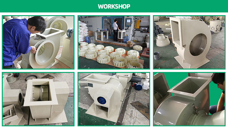 • FRP glass fiber reinforced plastic anticorrosive centrifugal fan impeller, volute, and parts are all formed by molds, the strength and rigidity are close to steel, and it is durable.