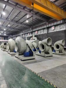 Generally, FRP centrifugal blower can be used on occasions with corrosive gas to discharge corrosive gas. The gas conveyed is not allowed to contain viscous substances, dust, and hard particles less than or equal to 150mg/m3, gas temperature less than or equal to 60 degrees, and relative humidity less than or equal to 100%. Fiberglass centrifugal fans are not suitable for high-temperature places.