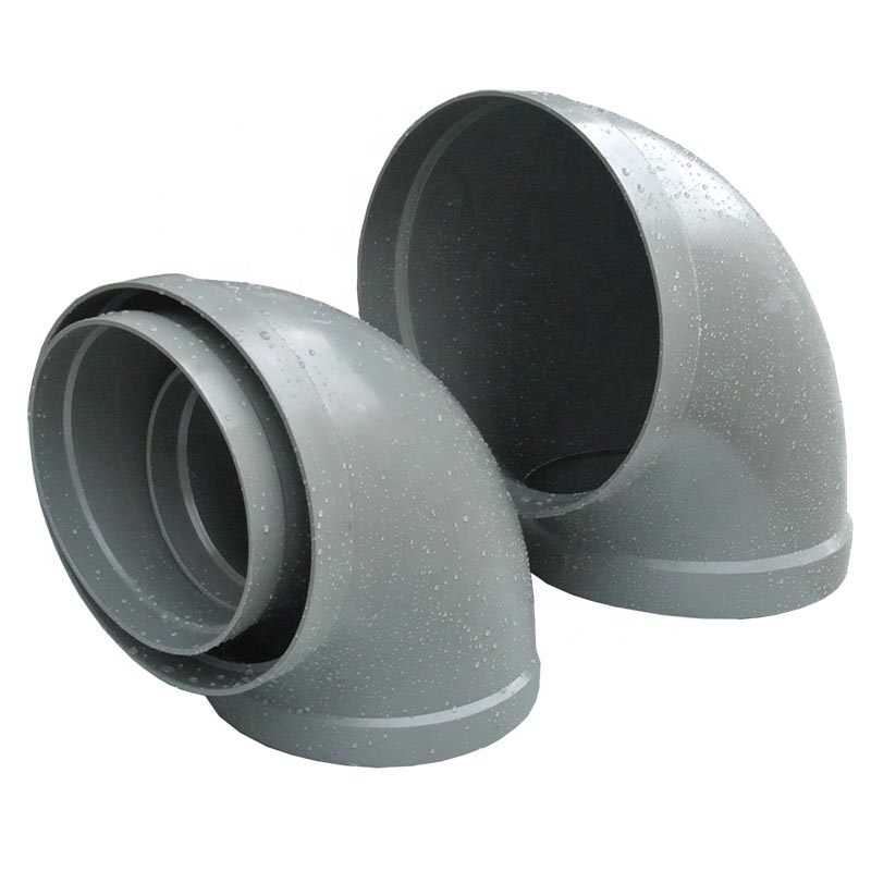 The 45/90 deg plastic elbows adopt a one-piece molding process and a direct plug-in connection, which is convenient for installation and welding. PP plastic material has high anti-chemical corrosion, flame retardant, high hardness, and other characteristics. It is widely used in duct links of ventilation systems.