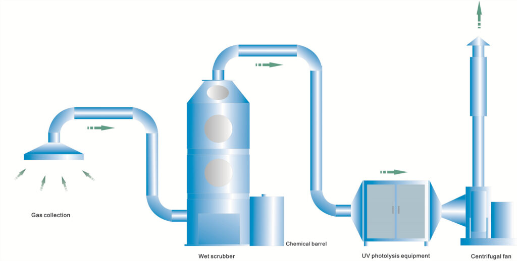 Wet scrubber + UV photolysis purification equipment + Centrifugal fan