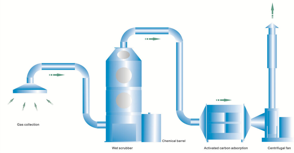 Wet scrubber + filter + activated carbon adsorption concentration+centrifugal fan